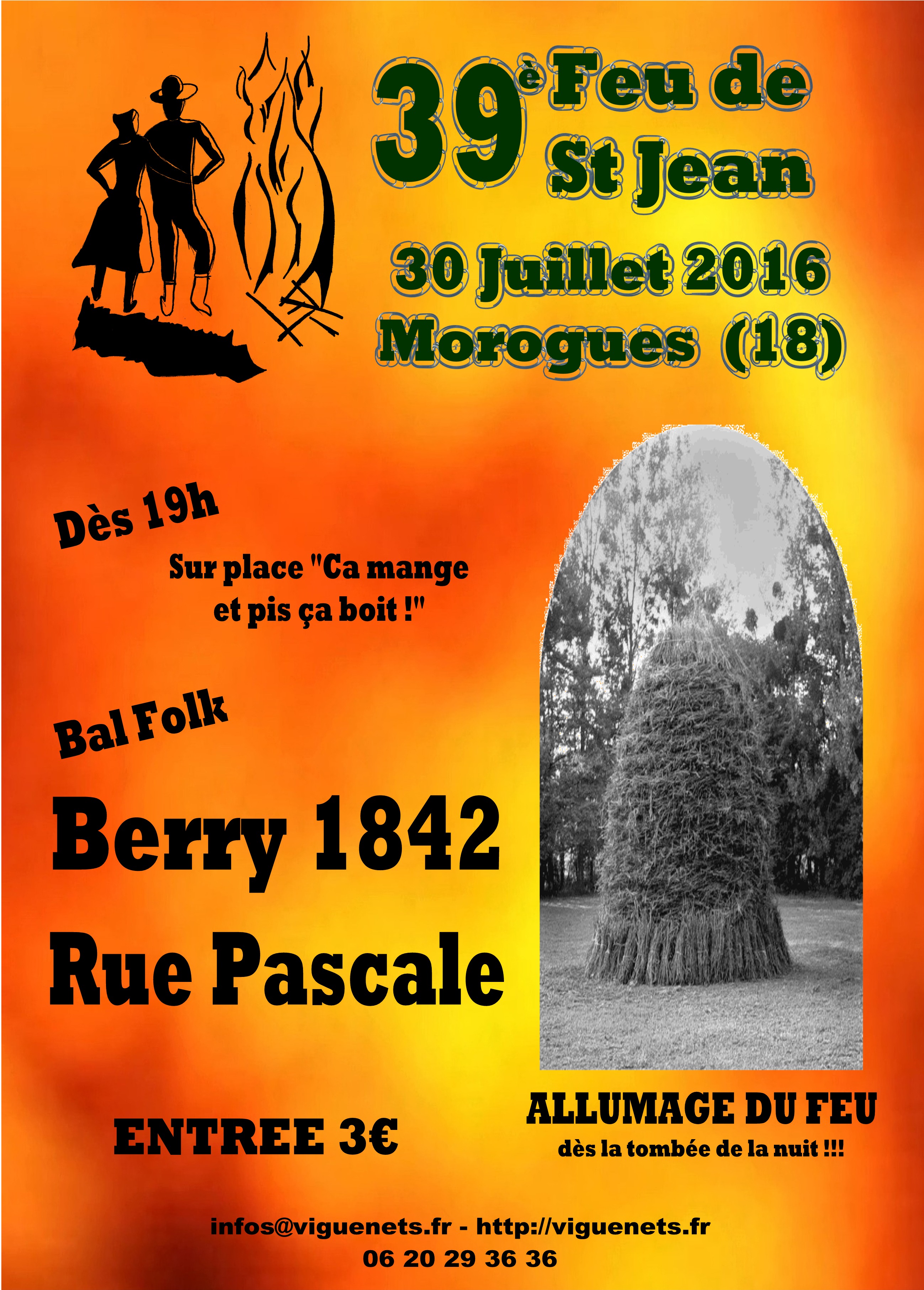 Programmation : 19h00 : Ouverture du site avec Buffet et Buvette Grand Bal Folk avec les groupes : "Berry 1842" "Rue Pascale" ALLUMAGF DU FEU DES LA TOMBEE DE LA NUIT !!!